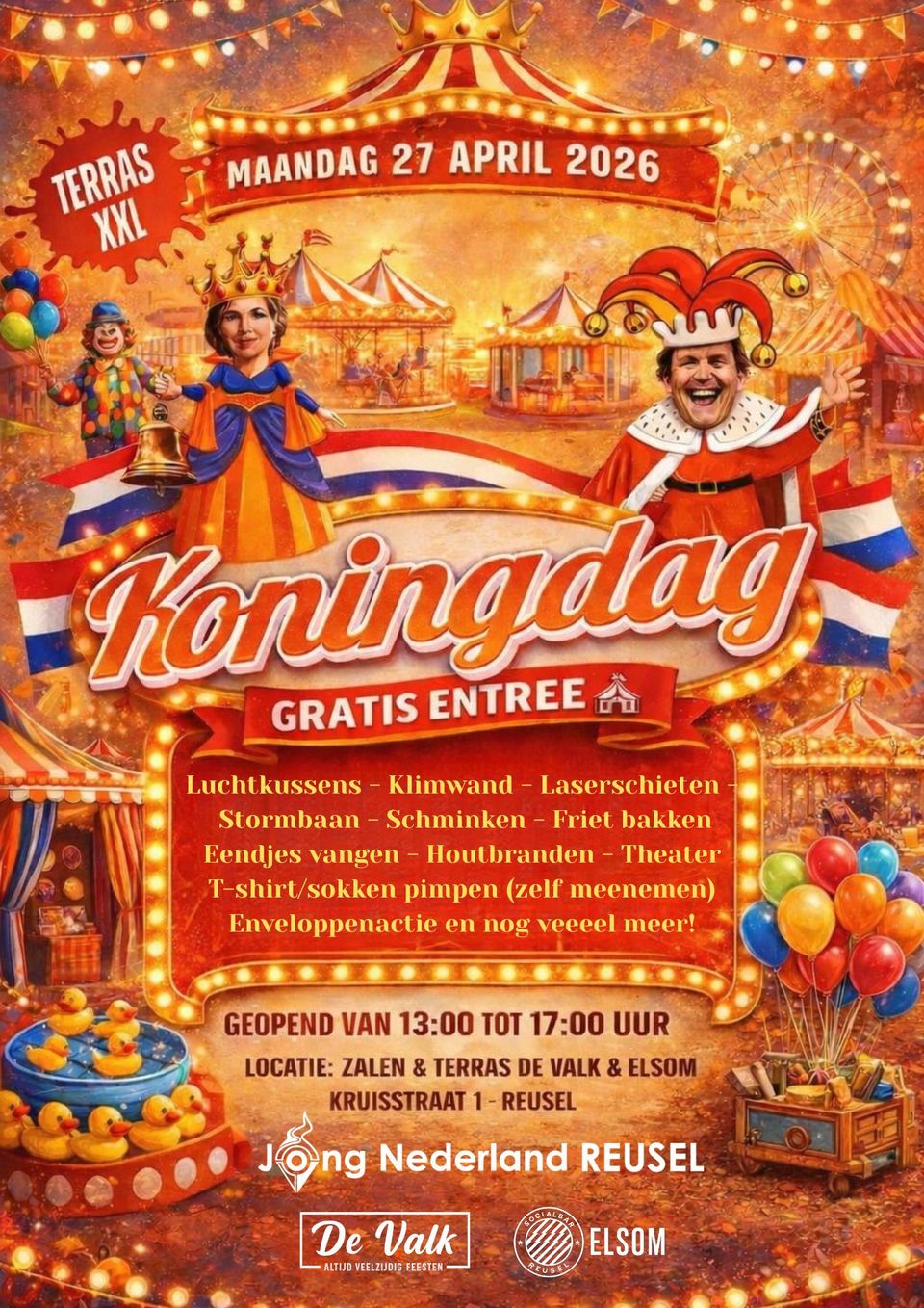 Ook dit jaar organiseert Jong Nederland Reusel weer Koningsdag in het dorp voor jong en oud!